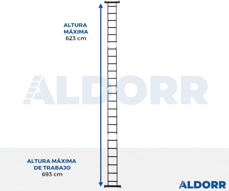 - Altura de trabajo en posición vertical: 690 cm