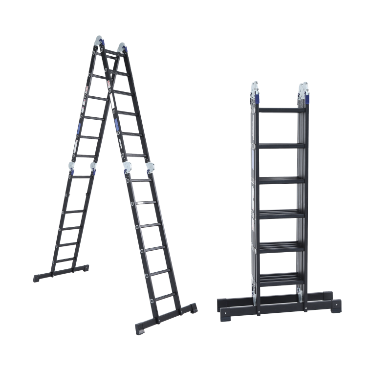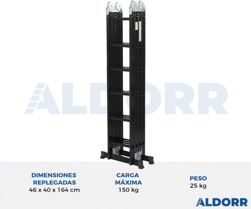 La escalera plegable ALDORR Professional con plataformas es la escalera ideal para diversos trabajos y consta de 4 partes de 6 peldaños. Gracias a su construcción de aluminio ligero y de alta calidad, cada trabajo se convierte en algo seguro y fácil. La versátil escalera puede utilizarse de muchas maneras; tanto en la posición recta, como en la posición plegable (posición A) y en la posición de plataforma, como se muestra en las imágenes. La amplia barra estabilizadora proporciona un mayor agarre y comodidad al utilizar la escalera y los peldaños tienen una banda de rodadura antideslizante para una mayor estabilidad. La escalera cumple con las estrictas normas de seguridad holandesas: NEN2484 y EN 131.
